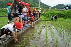 印南町清流小学校 1・2年生(32人)害虫をアイガモに駆除してもらう無農薬美味しいお米作りのお手伝い・・