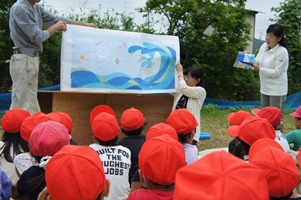 『海と空の約束プロジェクト代表 西谷 寛さまの貸出によりビオトープでお披露目することが出来ました。』
