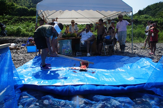 町内外から50人の親子が参加テナガエビ66匹ゲット