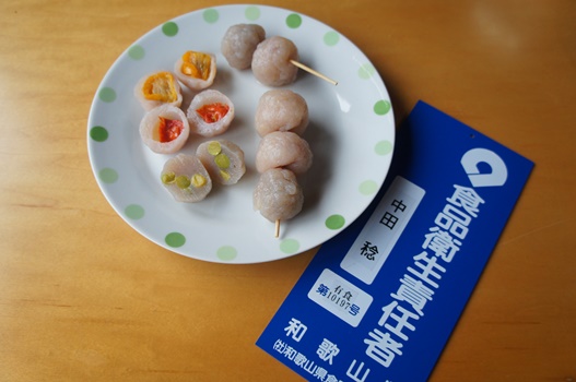 印南町の特産品エンドウ豆手づくりこんにゃくで包み